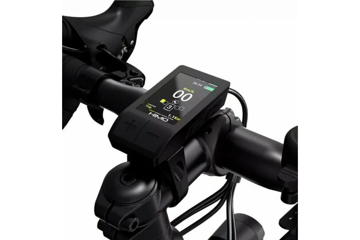 На рулевой стойке находится компактный бортовой компьютер с цветным дисплеем и водонепроницаемостью IPX7. На экране отображается текущая скорость движения, количество пройденных километров, режим езды и уровень заряда батареи.
