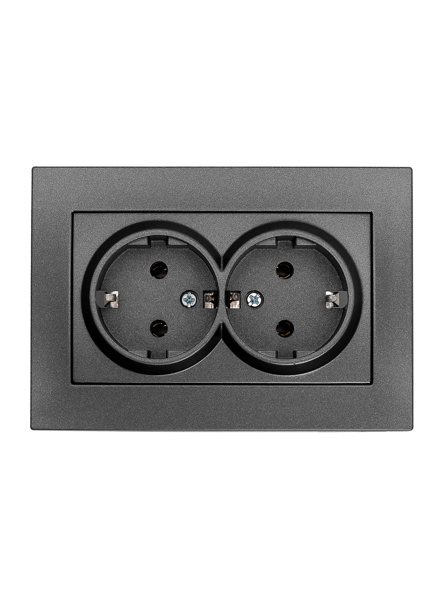 Узел розетки 2-гнездной, c заземлением, без шторок, для скрытой установки. С рамкой. Цвет - дымчатый.