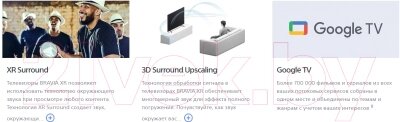 Технологии улучшения изображенияTrue Motion, AI Upscaling, TRILUMINOS, XR Contrast Booster, Local Dimming, Motion Clarity Index, Live Colour, Pixel Contrast Booster
