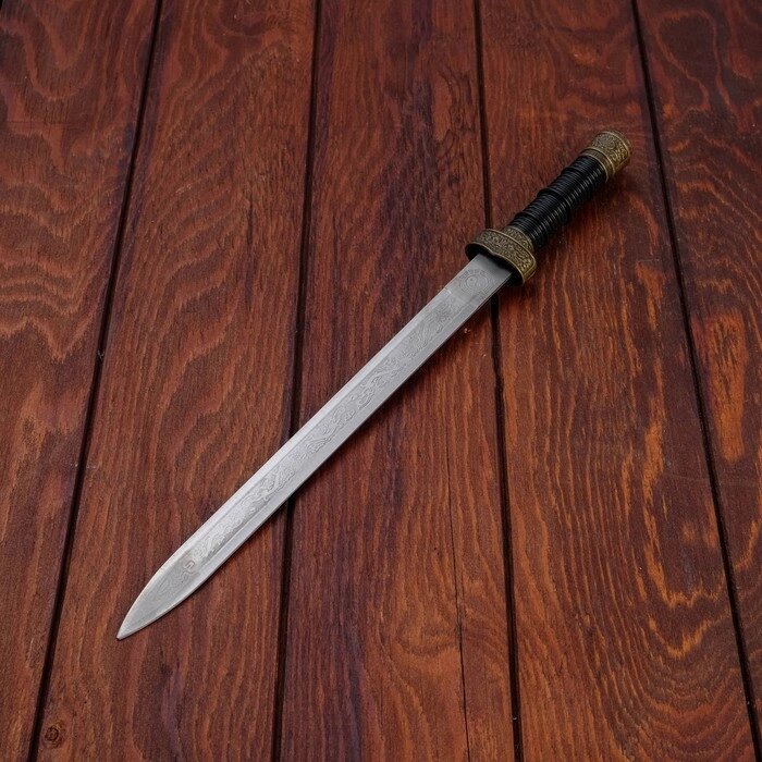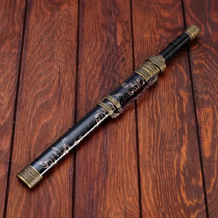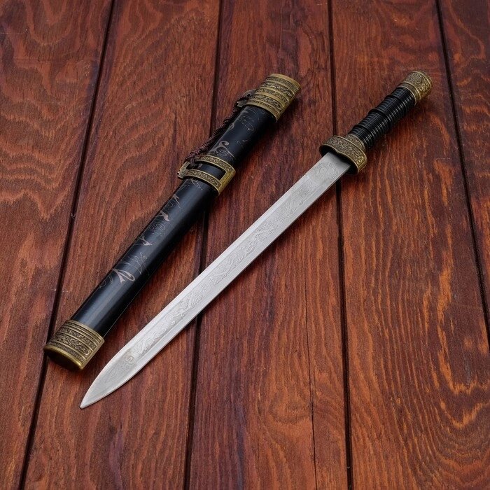 Сувенирный меч, прямой с резьбой по лезвию, ножны пустыня, 3 вставки металл, 40см