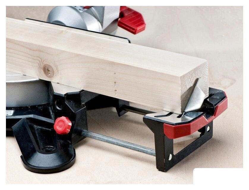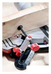 КомплектацияТвердосплавное пильное полотно (60 зубьев)2 встроенных расширения столаТорцовочный упорЗажим для материалаИнструмент для смены пильного дискаНамотка кабеляМешок для сбора опилок