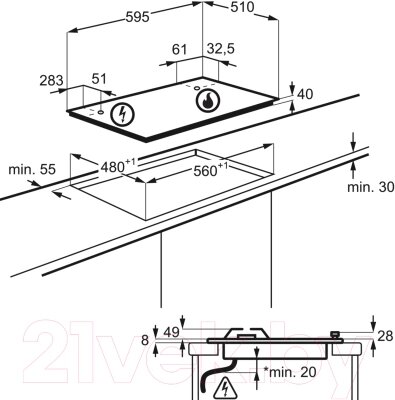 • Ширина панели 59.5 см