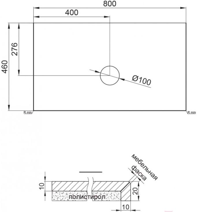 • Установка столешницы накладная (встраиваемая сверху)