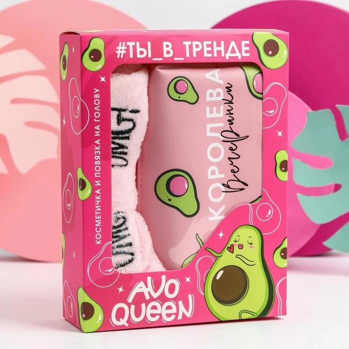 Набор Avoqueen, стильная косметичка и повязка на голову