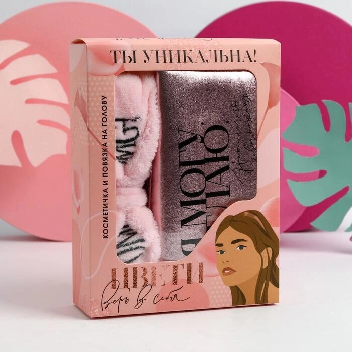 Набор "Верь в себя! стильная косметичка и повязка на голову