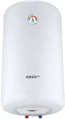 Водонагреватель накопительный, электрический нагрев, объем 100 л, мощность 1.5 кВт, вертикальная установка, подводка нижняя, максимальная температура нагрева 75 °C, защита от перегрева, теплоизоляция.