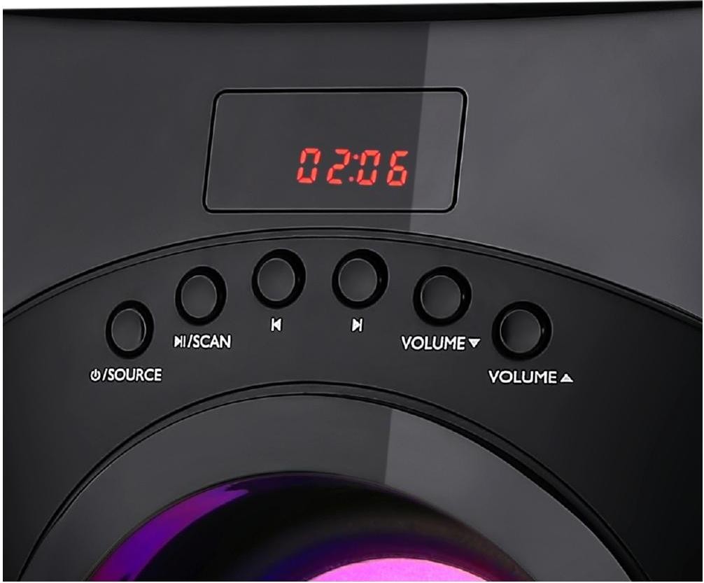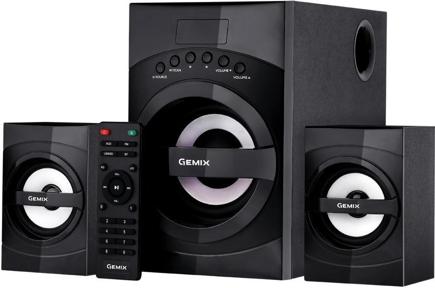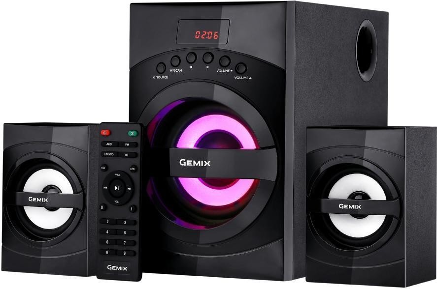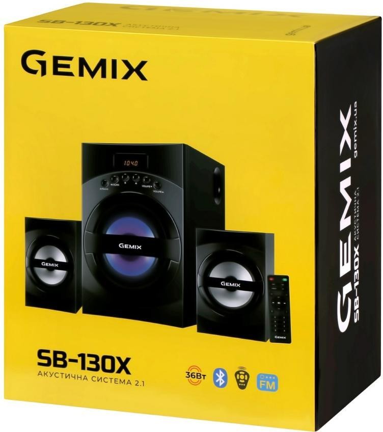 Мультимедійна акустична система Gemix SB-130X з відмінним і насиченим звучанням. Загальна потужність 56 Вт достатня для прослуховування музики, спільному перегляду фільмів, для озвучування ігор. Класичні форми акустичної системи гармонійно доповнені чорною глянсовою панеллю сабвуфера - модель відмінно виглядатиме у вас вдома. А підсвічування сабвуфера створить настрій та святкову атмосферу. Панель управління і дисплей зручно розташовані на передній панелі сабвуфера. Модель оснащена вбудованим USB портом, Карт Рідером для відтворення звуку з зовнішніх джерел, а також FM приймачем з пам'яттю до 100 станцій.