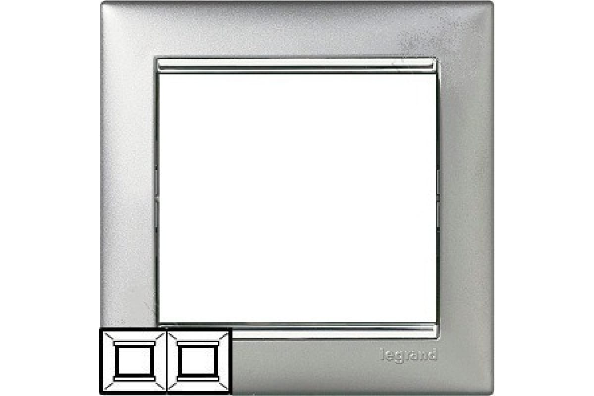 Двухместная горизонтальная рамка, алюминий/серебряный штрих Legrand Valena 770352