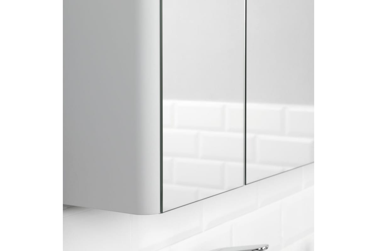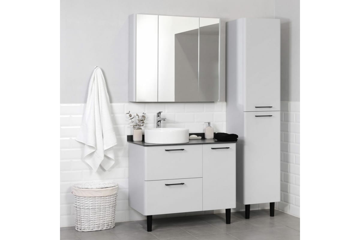 Корпус шкафа изготовлен из влагозащищенного МДФ в матовой эмали. Такое покрытие не только великолепно выглядит, но максимально устойчиво к воздействию влаги и температуры.