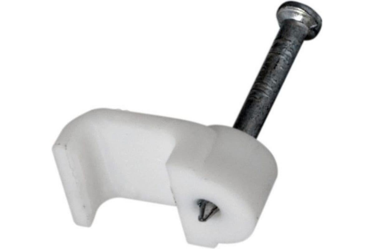 Пластиковая плоская скоба с гвоздем REXANT 8x3 мм, белая, 20 шт. 07-4207-20