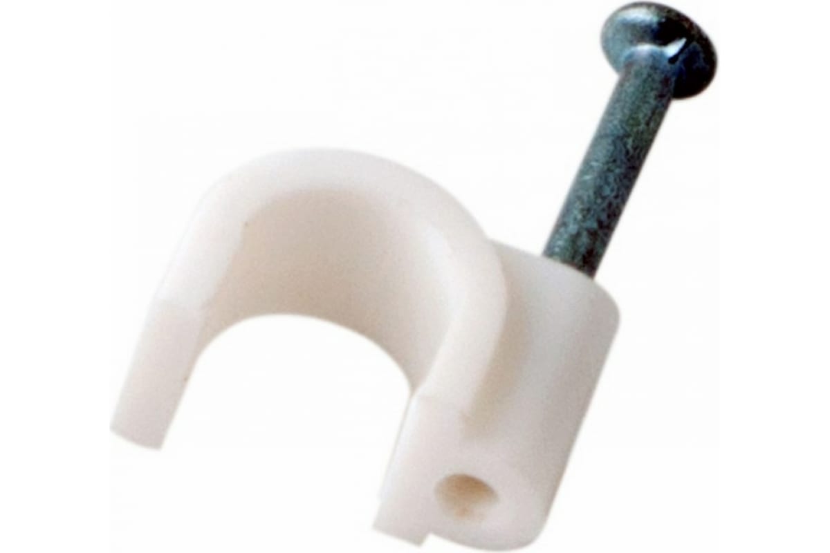 Пластиковая круглая скоба с гвоздем REXANT 7 мм, белая, 20 шт. 07-4007-20