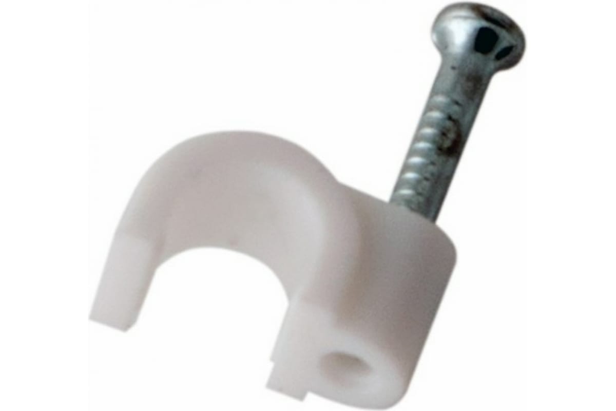 Пластиковая круглая скоба с гвоздем REXANT 5 мм, белая, 20 шт. 07-4005-20