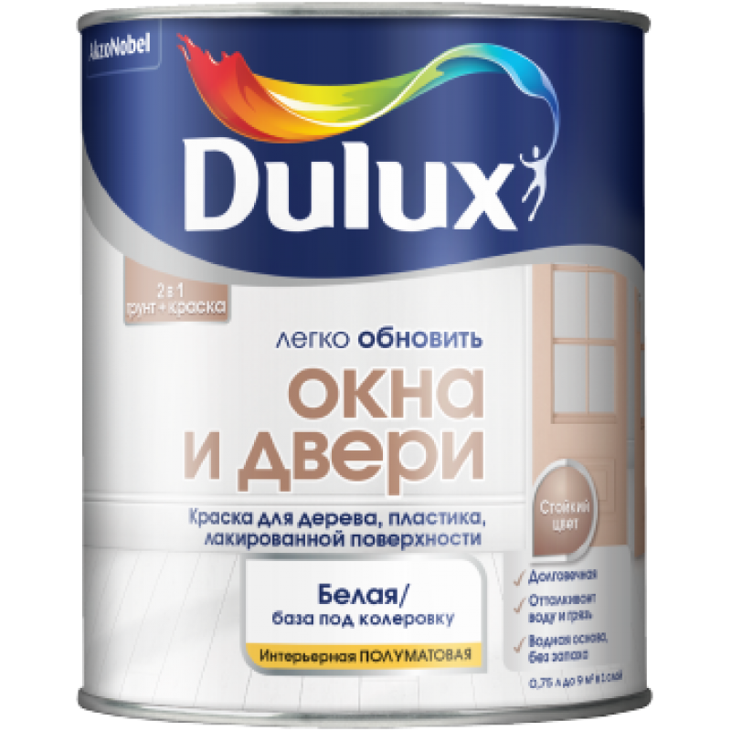 Краска DULUX Окна и Двери (ВС - только для колеровки в насыщенные цвета) -полуматовая краска для дерева, пластика, лакированной поверхности