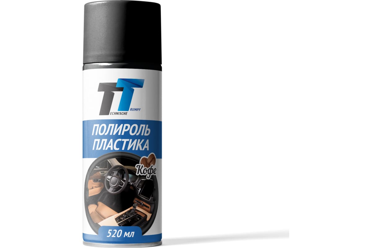 Полироль пластика TT кофе 520 мл, аэрозоль PP05-C/011 предназначается для очистки, обновления и продления срока службы пластиковых и резиновых поверхностей (обивка салона, панель приборов, уплотнители, бампер и т. д.) . Легко чистит, восстанавливает и защищает любые поверхности из пластика, резины и кожзаменителя, удаляет пятна, защищает от пыли и влаги. Обладает приятным глянцевым блеском, имеет эргономичный распыл - мягкий факел, не забрызгивающий стёкла. Обладает прекрасным ароматом, великолепно чистит, образует стойкую плёнку.