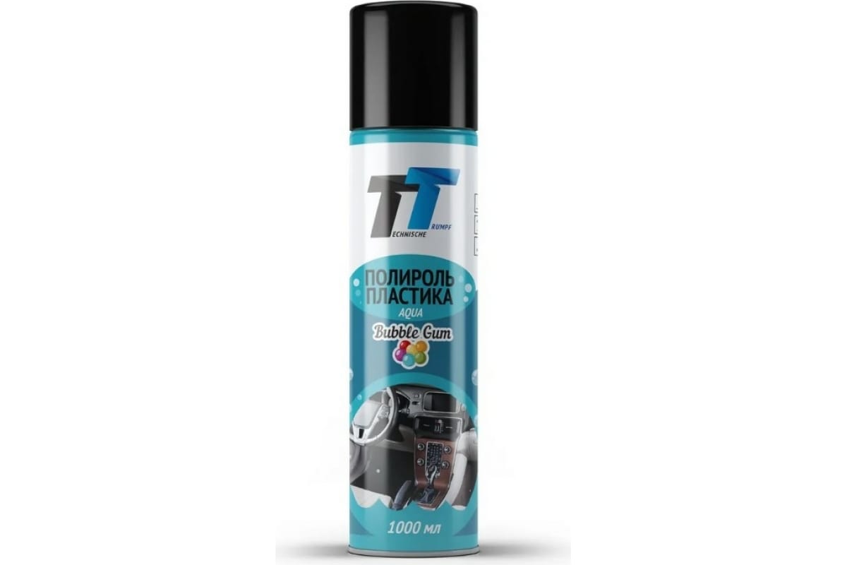 Полироль пластика TT AQUA 1000 мл, бабл гам, аэрозоль PA10-BG/05 – уникальный, экологически чистый продукт на водной основе, был специально разработан для очистки, обновления и защиты панели приборов, обивки из винила, кожи, пластика, дерева.