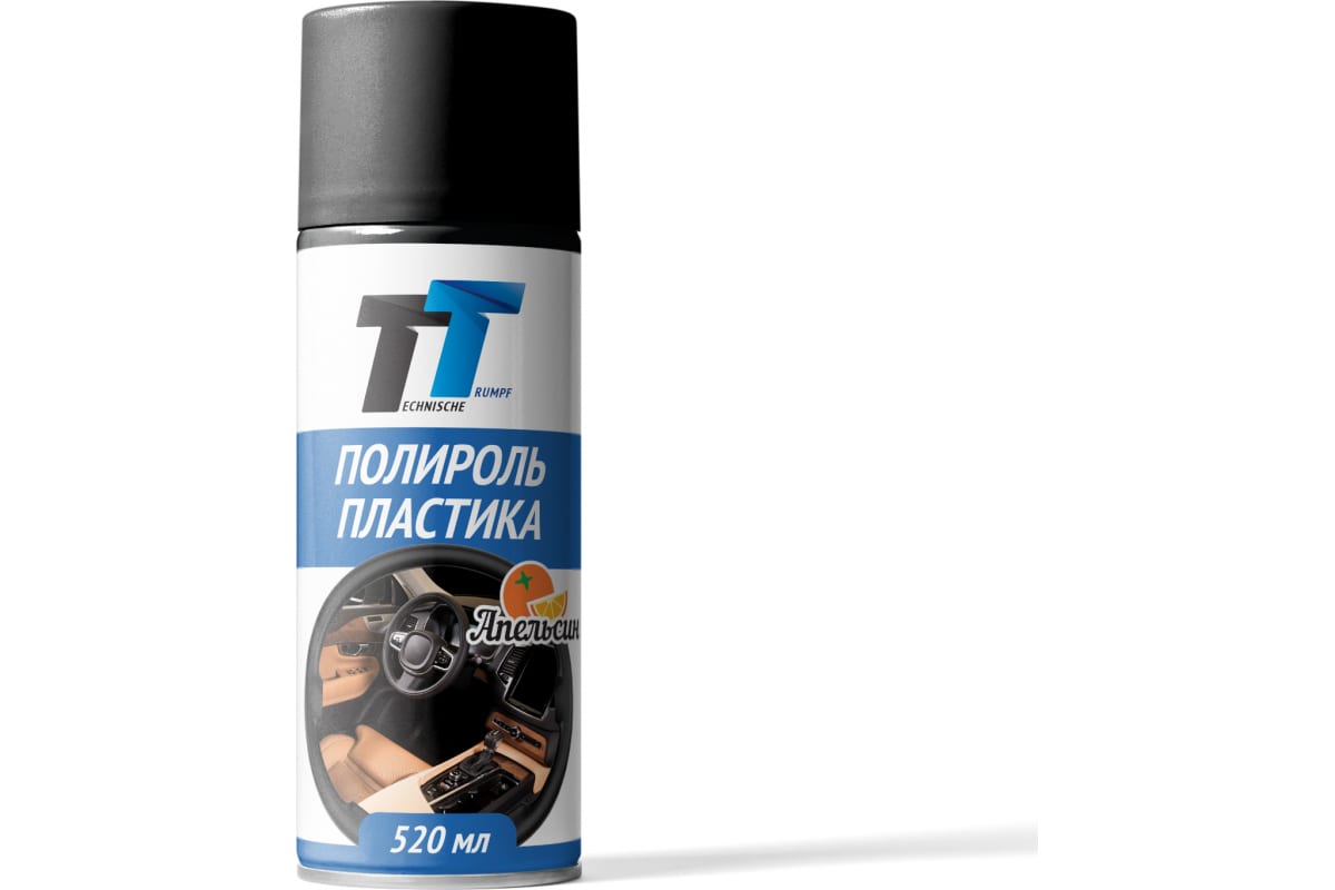 Полироль пластика TT апельсин 520 мл, аэрозоль PP05-O/011 предназначается для очистки, обновления и продления срока службы пластиковых и резиновых поверхностей (обивка салона, панель приборов, уплотнители, бампер и т. д.) . Легко чистит, восстанавливает и защищает любые поверхности из пластика, резины и кожзаменителя, удаляет пятна, защищает от пыли и влаги. Обладает приятным глянцевым блеском, имеет эргономичный распыл - мягкий факел, не забрызгивающий стёкла. Обладает прекрасным ароматом, великолепно чистит, образует стойкую плёнку.