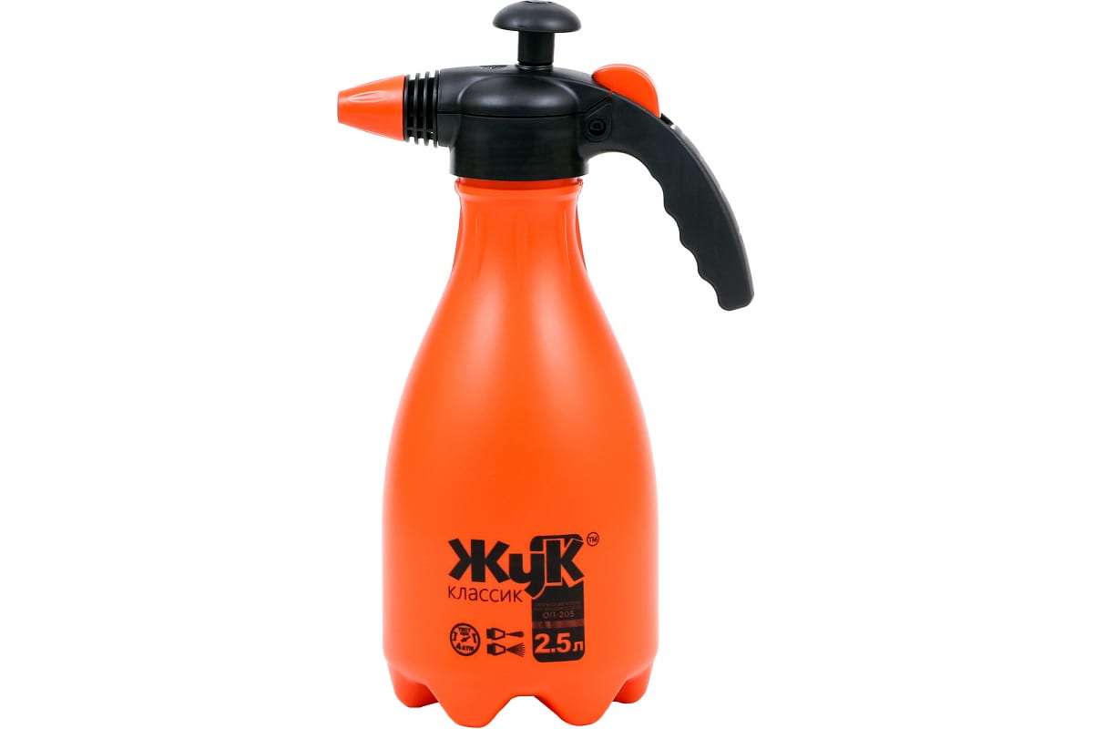 Ручной опрыскиватель Cicle Жук Классик 2.5 л 4607156362417 используется для ухода за горшечными, домашними растениями, рассадой. При помощи опрыскивателя осуществляется бережное орошение, внесение жидких удобрений, подкормки. Посредством поворота форсунки можно регулировать тип струи - от направленной до мелкодисперсного распыления. На основании бутыли предусмотрен поддон - для лучшей устойчивости. Емкость выполнена из качественного пластика.