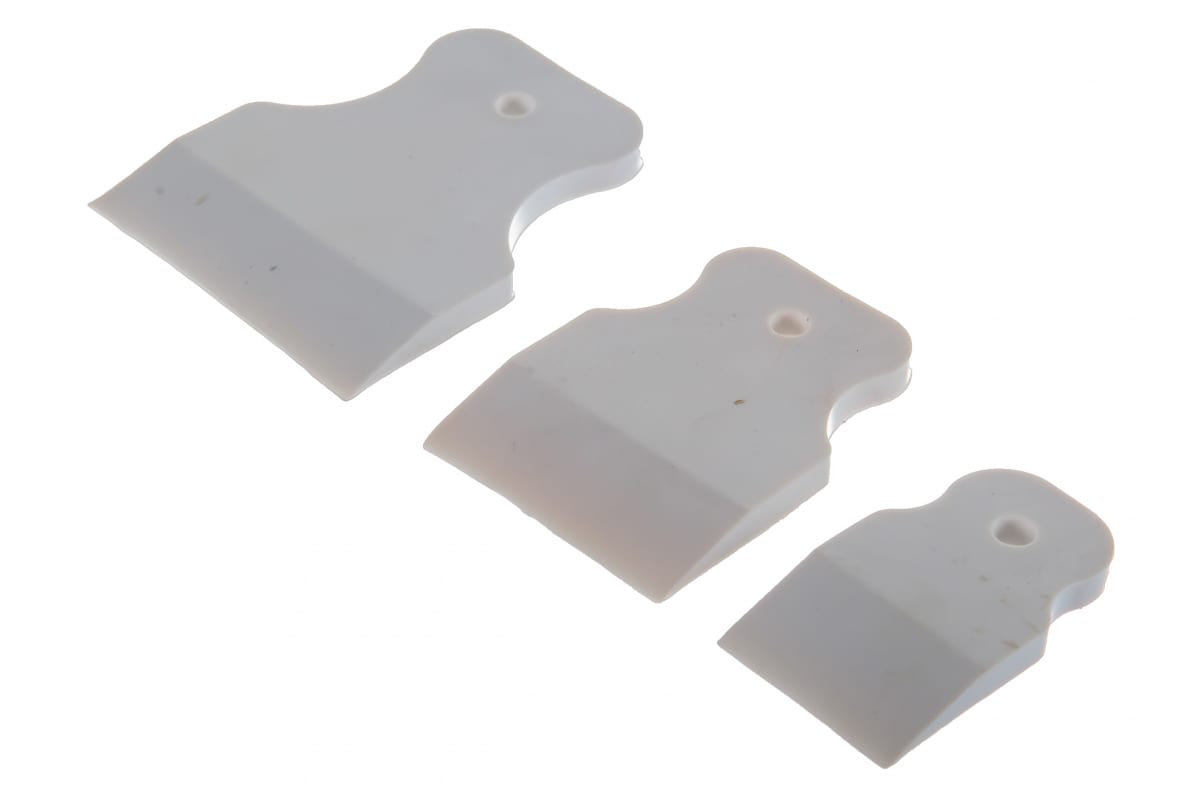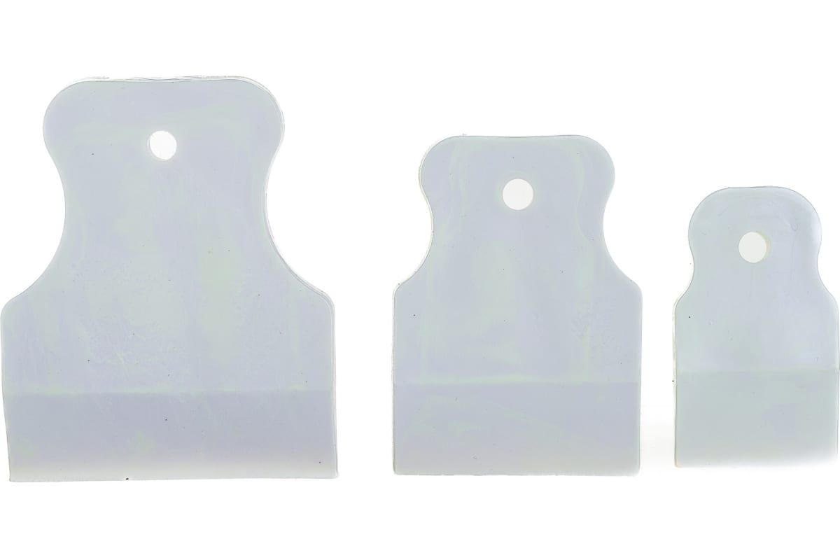 Резиновые шпатели 3 шт. FIT 06867 служат для аккуратной затирки швов. В комплектацию входят 3 инструмента, имеющий небольшую ширину 40-80 мм. Во время работы на поверхности не остается следов, так как при изготовлении использовалась белая резина. Гибкость обеспечивает удобство нанесения материала.