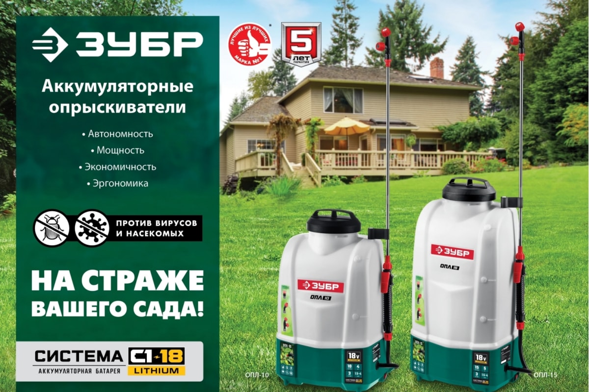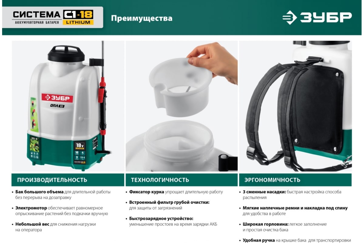 Аккумуляторный опрыскиватель ЗУБР 10 л ОПЛ-10 отличается эффективностью, мобильностью, экологичностью. Бережно орошает растения. Подходит для дезинфекции, мытья окон и стен.