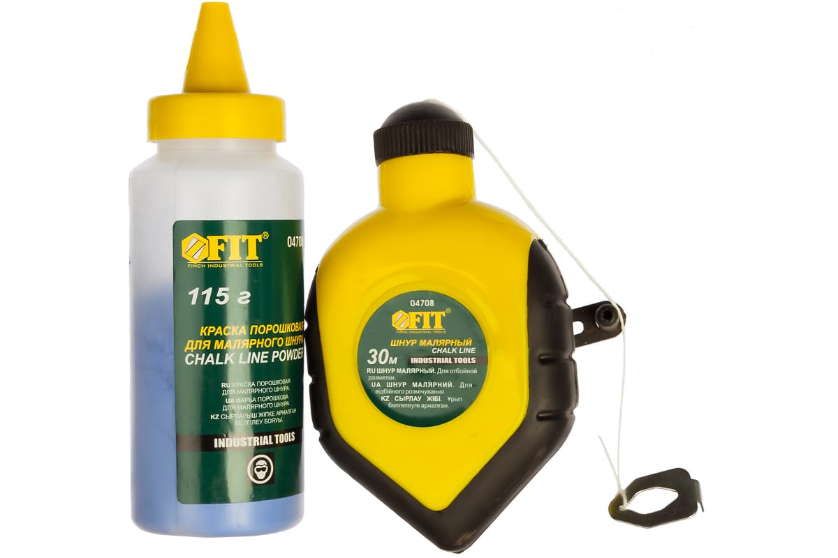 Малярный отбойный шнур 30 м + разметочная краска 115 гр. FIT 04708 применяются для нанесения разметки. Шнур помещен в прорезиненный корпус, изготовленный из ABS пластика, что способствует удобству в работе. Данный комплект используется во время отделочных работ.
