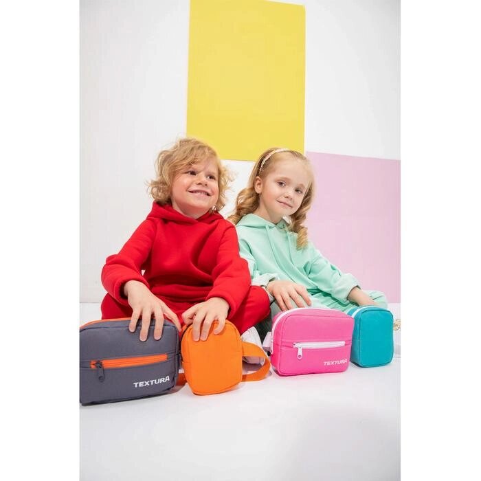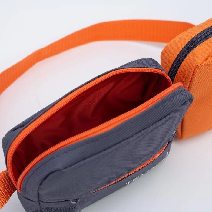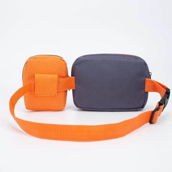 Сумка детская поясная, 2 отдела на молнии, наружный карман, длинный ремень, цвет серый/оранжевый