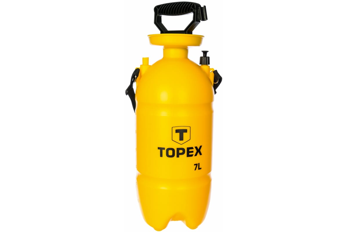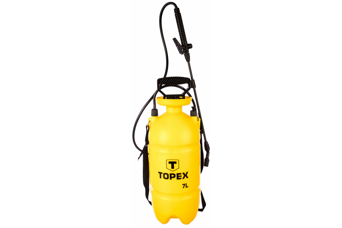 Опрыскиватель TOPEX 7 л 15A506 применяется для орошения деревьев и кустарников. Благодаря широкому горлышку его бак значительно легче наполнить. Фиксация струи повышает комфорт работы, а предохранительный клапан обеспечивает безопасность при эксплуатации. Дополнительный ремень позволить повесить опрыскиватель на плечо, что упростит его транспортировку.