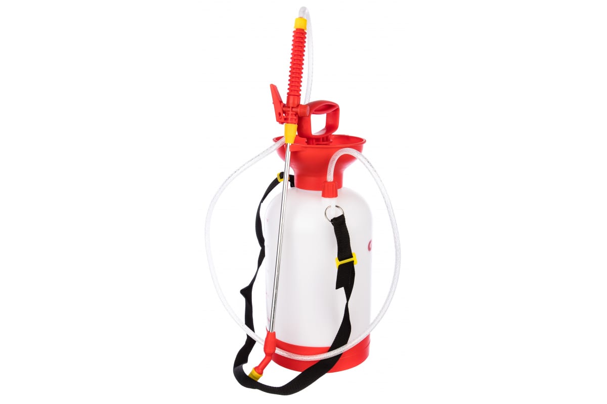 Опрыскиватель садовый "Aqua Spray" GRINDA 8-425115_z01 может использоваться для борьбы с вредителями растений, профилактики заболеваний птиц, а также для дезинфекции помещений. Может работать в режимах опрыскивания или непрерывного полива. Ударопрочный резервуар, вмещающий до пяти литров дезинфицирующего раствора, оснащен широкой горловиной для быстрого наполнения и автоматическим перепускным клапаном для безопасного использования. Через широкую горловину можно быстро заполнить резервуар опрыскивающим раствором. В случае возникновения избыточного давления внутри бачка, перепускной клапан автоматически стравливает его до оптимального значения. Наличие удлинителя увеличивает площадь обрабатываемой поверхности, обеспечивая полив труднодоступных мест. Наплечный ремень дает возможность удобного использования и легкой транспортировки опрыскивателя GRINDA. Удлинитель выполнен из высокопрочного сплава алюминия, опрыскиватель - из пластика.