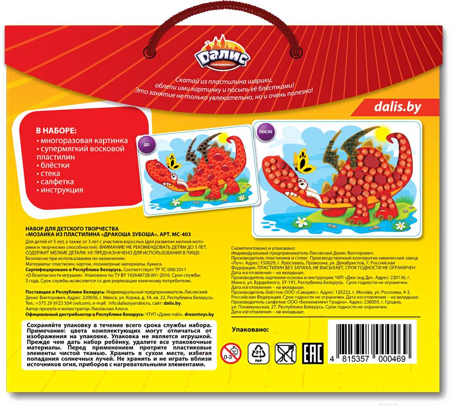Набор для лепки Далис Мозаика из пластилина. Дракоша Зубоша / МС-403
