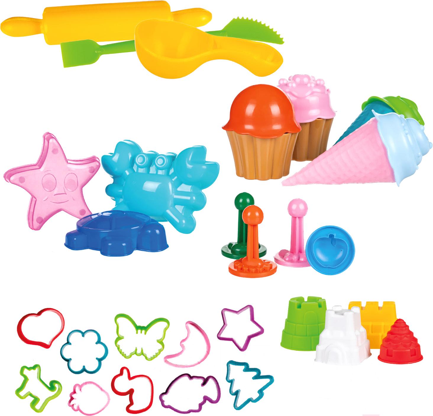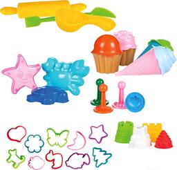 • Комплектация стек (1 шт.), аксессуар (ложка), скалка (1 шт.), формочка для лепки («Замок» — 4 шт., «Кексики» — 2 шт., «Мороженое» — 2 шт., «Морско), формочка для вырубки (10 шт.), штамп (печатка) (4 шт.)