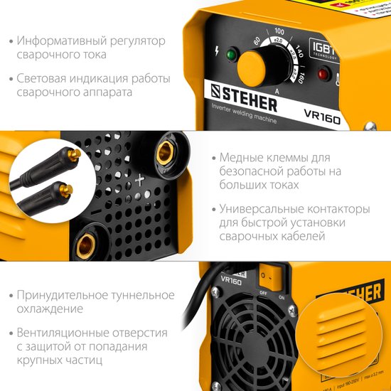 • Максимальный сварочный ток 160 А