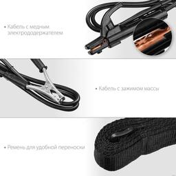 • Комплект поставки - Аппарат сварочный;- Кабель с электрододержателем 1,5 м;- Кабель с зажимом массы 1,2 м;- Ремень;- Руководство по эксплуатации.