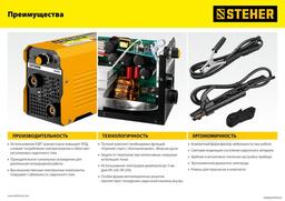• Комплект поставки - Аппарат сварочный;- Кабель с электрододержателем 1,5 м;- Кабель с зажимом массы 1,2 м;- Ремень;- Руководство по эксплуатации.