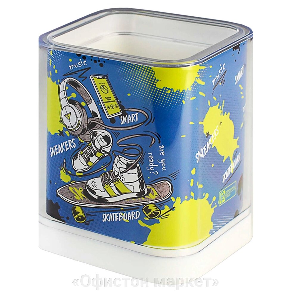 Подставка для ручек "Скейт", 82x103x82 мм, голубой, зеленый