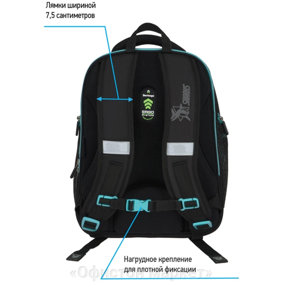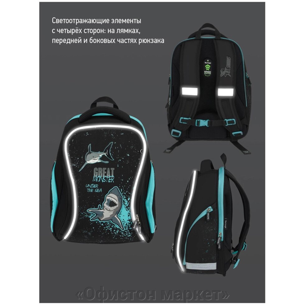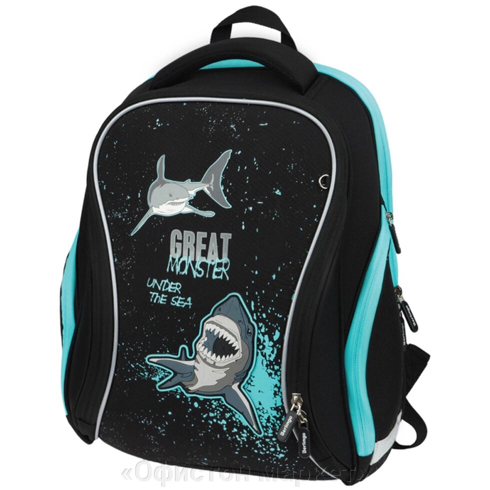 Рюкзак школьный "Sea monster", черный, бирюзовый