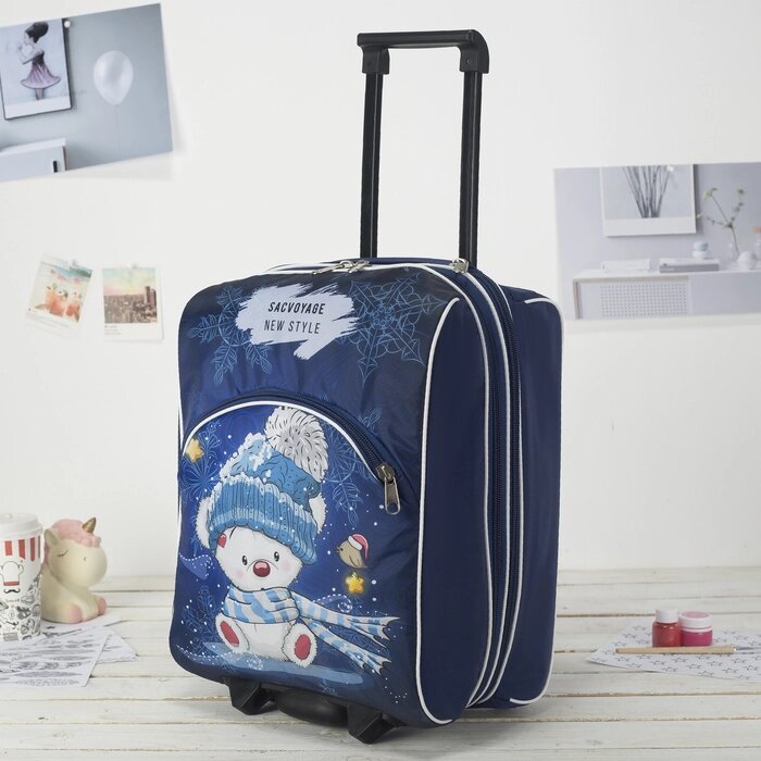 Чемодан малый 16", отдел на молнии, наружный карман, цвет синий