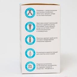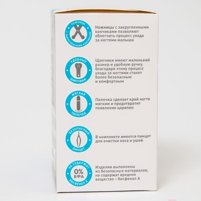 • В комплекте ножницы, щипчики, пилочка, пинцет детский