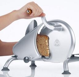 • Дополнительная информация Ручная ломтерезка. Толщина нарезки: 0 - 15 мм. Суппорт для продуктов с защитой пальцев. Ножки-присоски. Диаметр ножа: 190 мм.