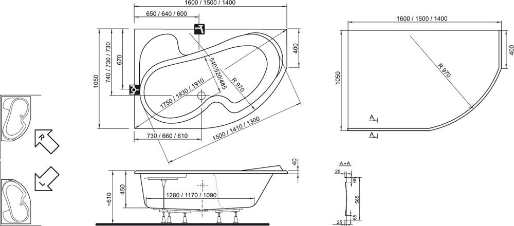 - Тип ванны Угловые