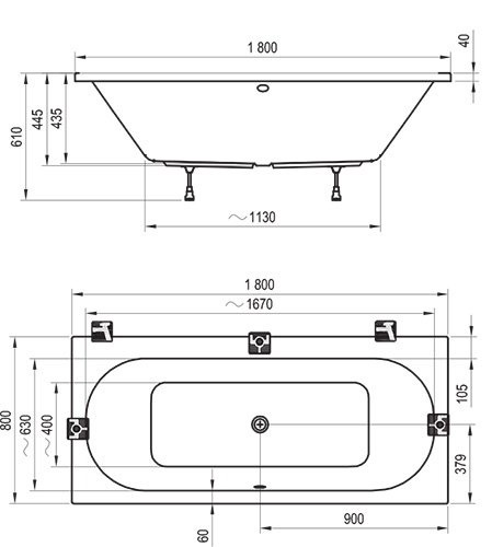 Ванна Ravak City Slim, 1800 мм x 800 мм x 435 мм, прямоугольник