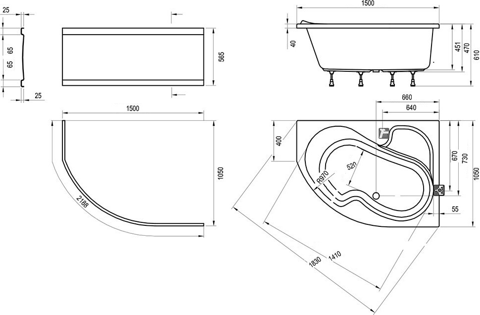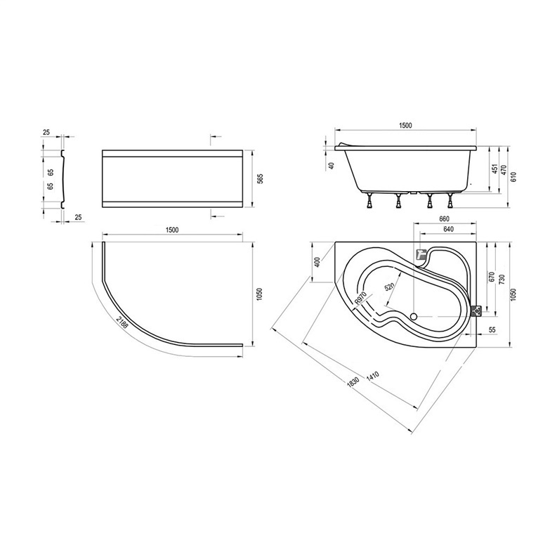- Тип ванны Угловые