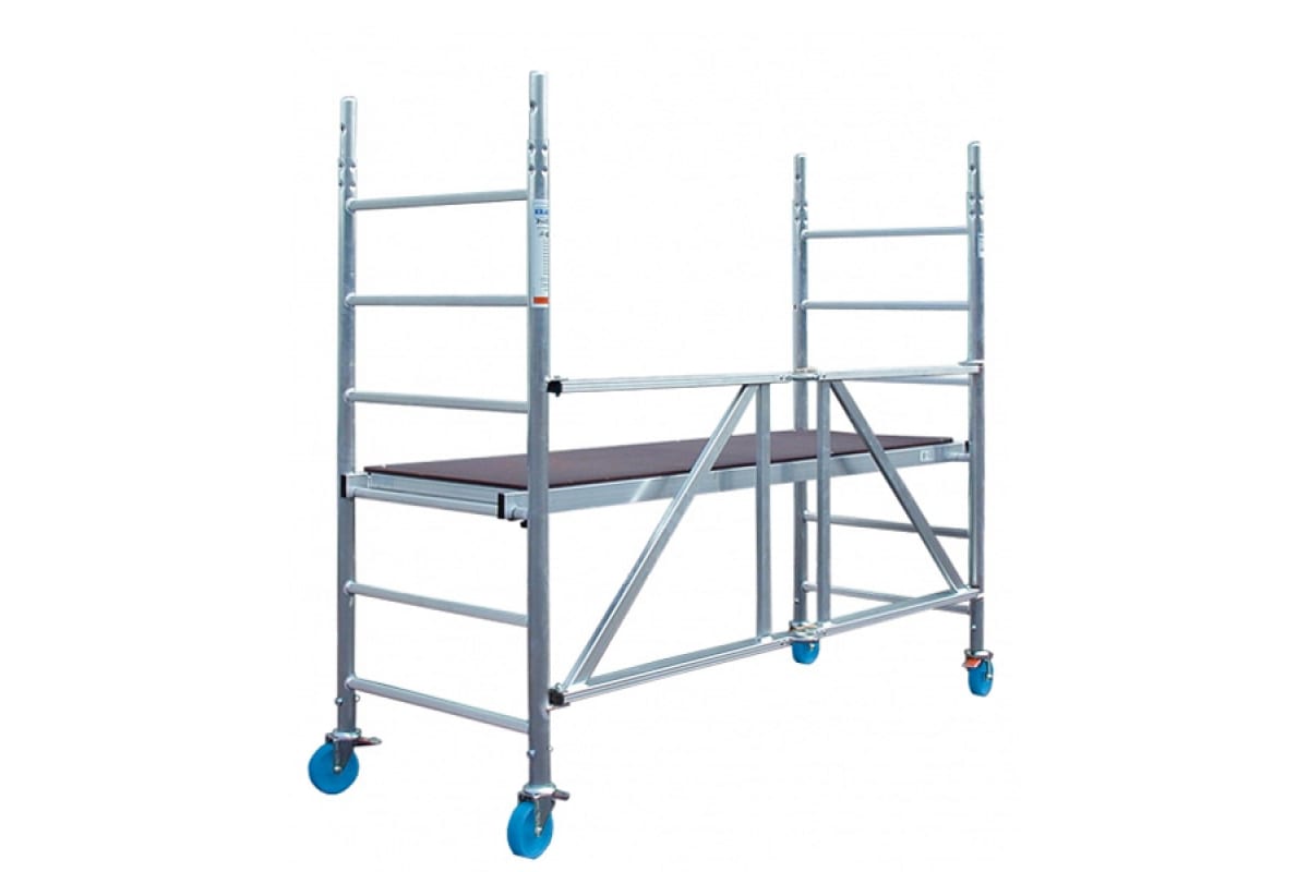 Передвижные складывающиеся подмости Krause MONTO PROTEC XS, 11.8 м 920096 - необходимый инструмент для ремонтных, монтажных и отделочных работ как внутри, так и снаружи помещения. Простота при монтаже и легкость при разборке оборудования. Настил изготовлен из панели, покрытой фенольной смолой, что предотвращает скольжение. Для удобства перемещения имеются четыре ролика.