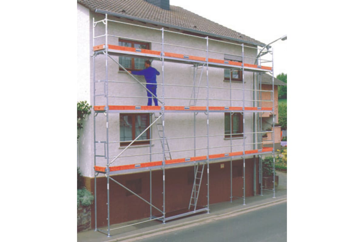 Пакет фасадных подмостей на стену Krause STABILO 82 кв.м 954824 позволяет выполнять ремонтные и отделочные работы зданий длиной до 10 мм. Система имеет жесткую надежную конструкцию, что дает возможность безопасно работать нескольким операторам одновременно. Для свободного передвижения между ярусами предусмотрены лестницы. Подмости имеют долгий срок эксплуатации и не требуют дополнительного обслуживания.