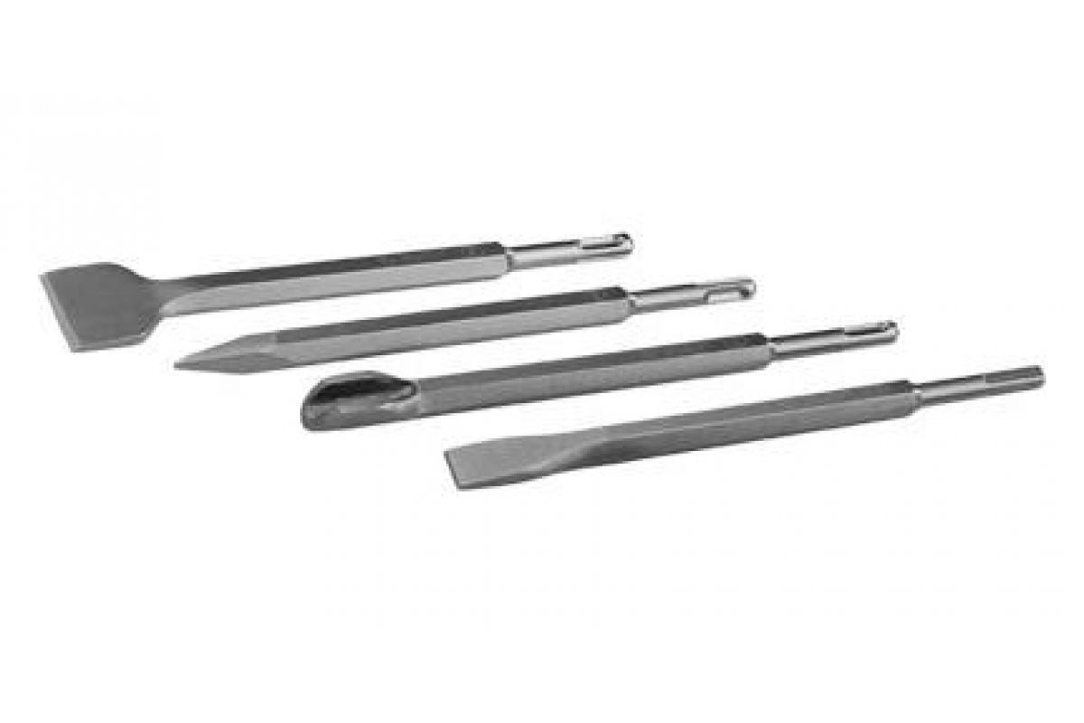 В набор входит 4 предмета: зубило пикообразное, плоское узкое, плоское широкое и полукруглое зубило - штробер.