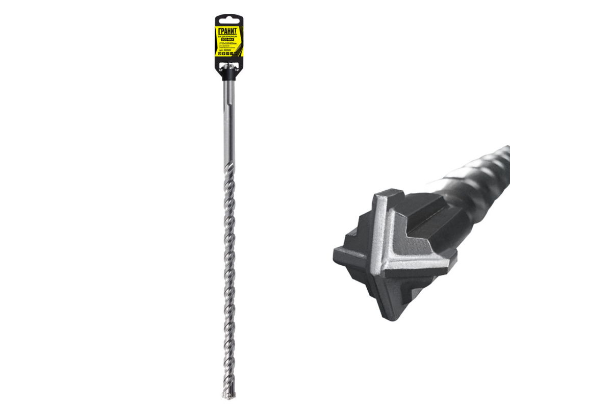Бур SDS-Max ГРАНИТ 822520 используется в перфораторах и отбойных молотках с системой крепления SDS-max для ударно-вращательного сверления. Бур оснащен увеличенной головкой с 4-мя резцами, что обеспечивает высокую скорость прохождения сквозь материал и долгий срок службы. Особая форма спирали ускоряет удаление продуктов сверления, уменьшая нагрев инструмента. Деформация бура от ударных нагрузок исключена за счет усиленного стального стержня. Предназначен для работы по бетону, граниту, кирпичной кладке и твердым известнякам.