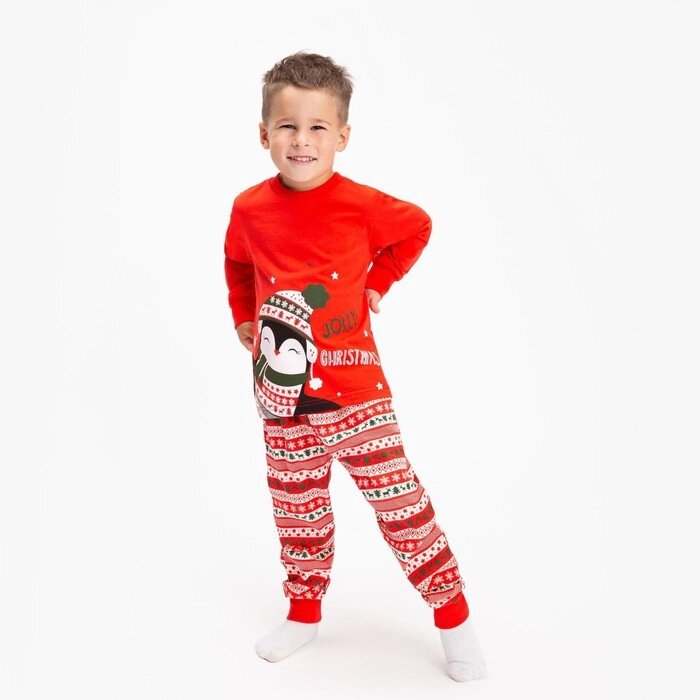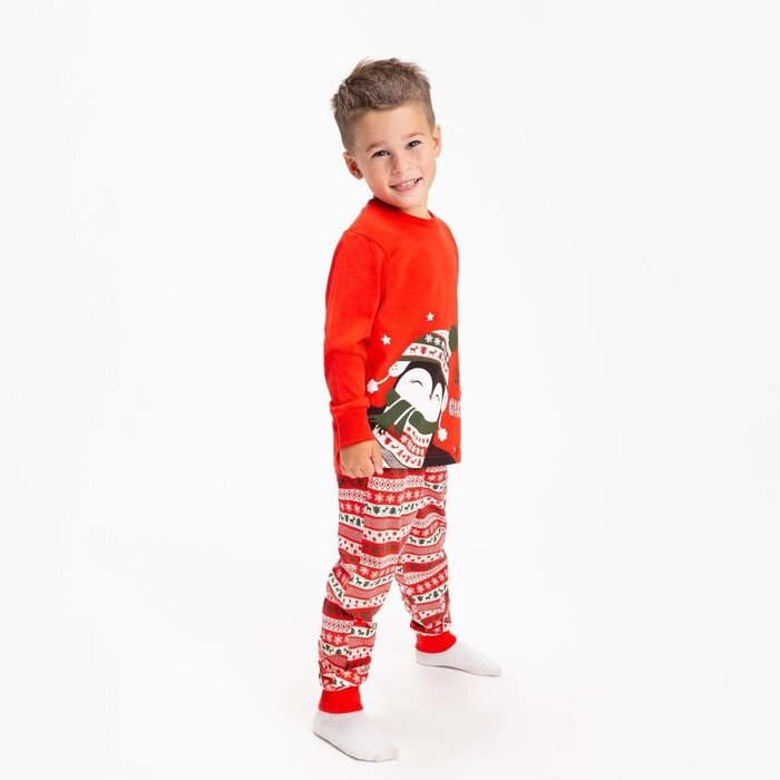 Пижама детская, цвет красный/пингвин, рост 140 см