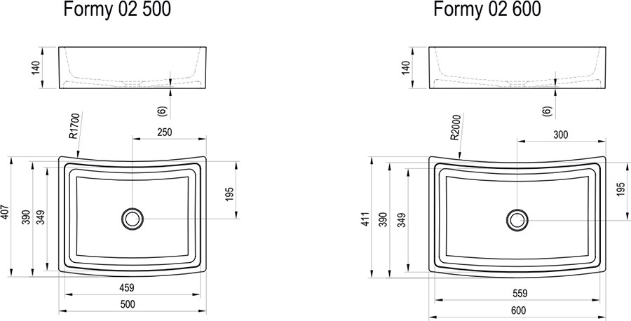 Раковина для ванной Ravak Formy 02 500, композитные материалы, 500 мм x 410 мм x 140 мм