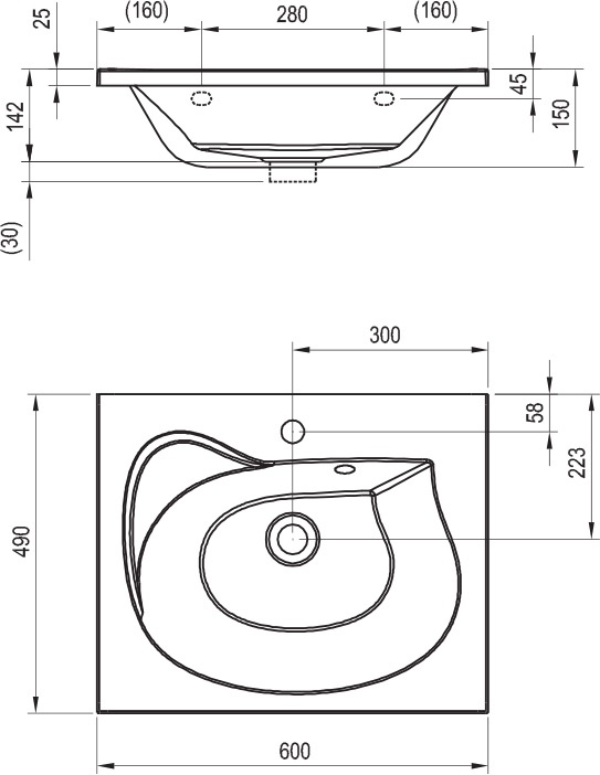 - Отверстие для перелива Нет