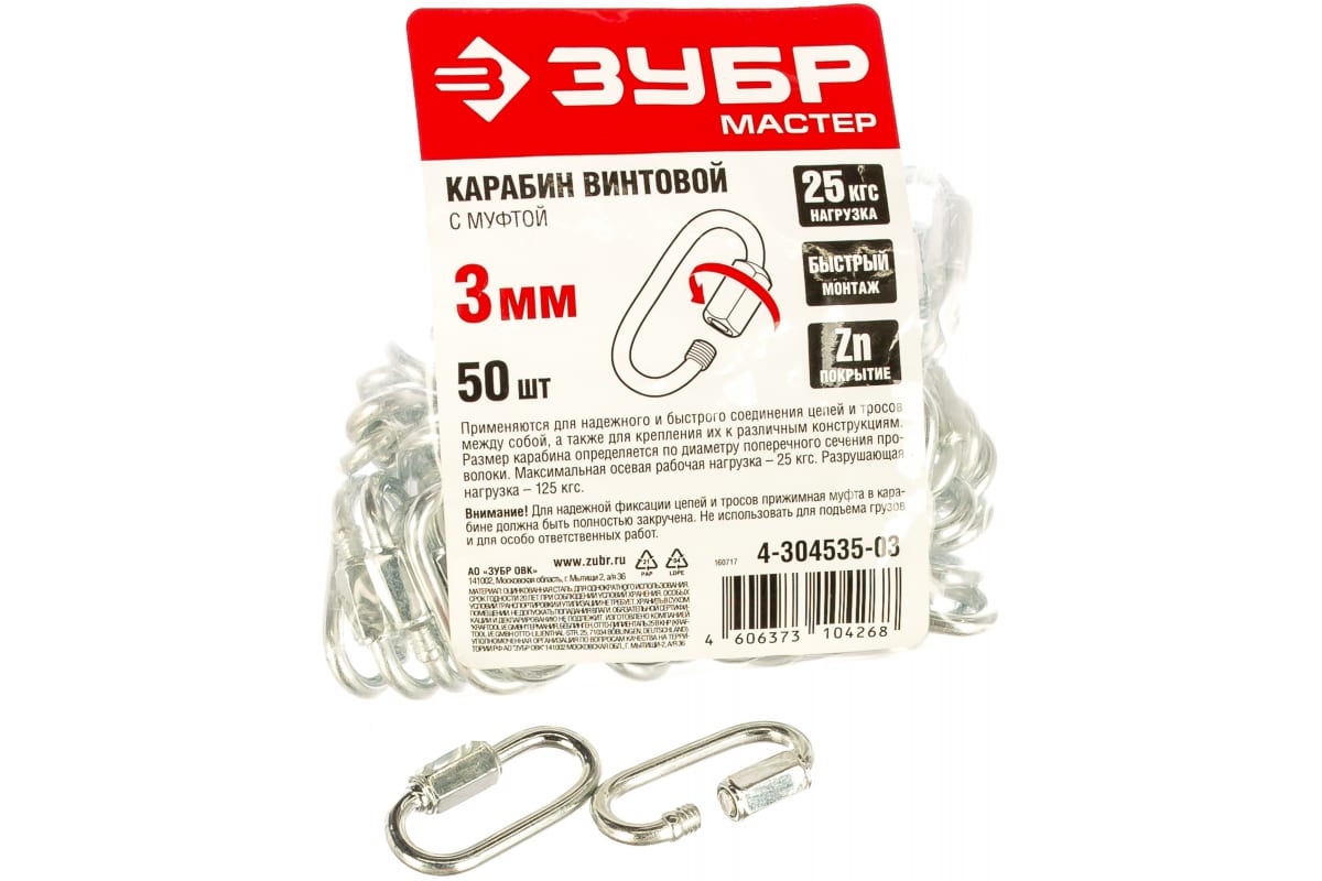 Карабин винтовой оцинкованный с муфтой 50 шт. (3 мм; ТФ5) Зубр 4-304535-03