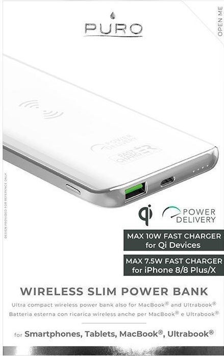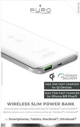 Зарядное устройство - аккумулятор Puro Slim Qi, 8000 мАч, белый
