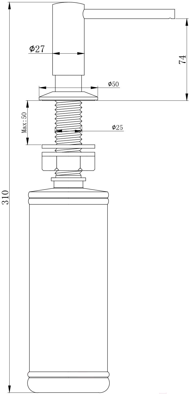 - Высота дозатора 74 мм